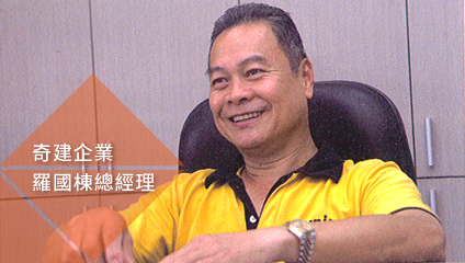 也由於將人視為貴重資產,羅國棟總經理似乎特別在乎生命安全,花費龐大成本提升工廠機具品質,盡最大努力避免工安意外發生,同時注意時間觀念,要員工每天準時上下班,方可保有良好生活品質。同時每年安排國內外員工旅遊,所有旅費都由公司負擔,藉以凝聚員工向心力。羅國棟總經理一再強調奇建企業財力雖然無法與大型企業相比,但盡其所能提供最佳福利,打造合理且人性化的工作環境。所謂「態度決定高度」,從羅國棟總經理對待員工的誠懇態度,讓人了解奇建企業的成功絕非僥倖,而它的未來,更值得我們拭目以待。