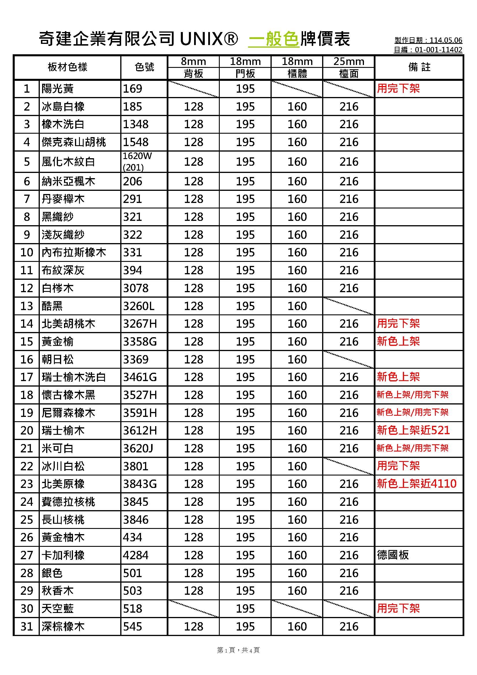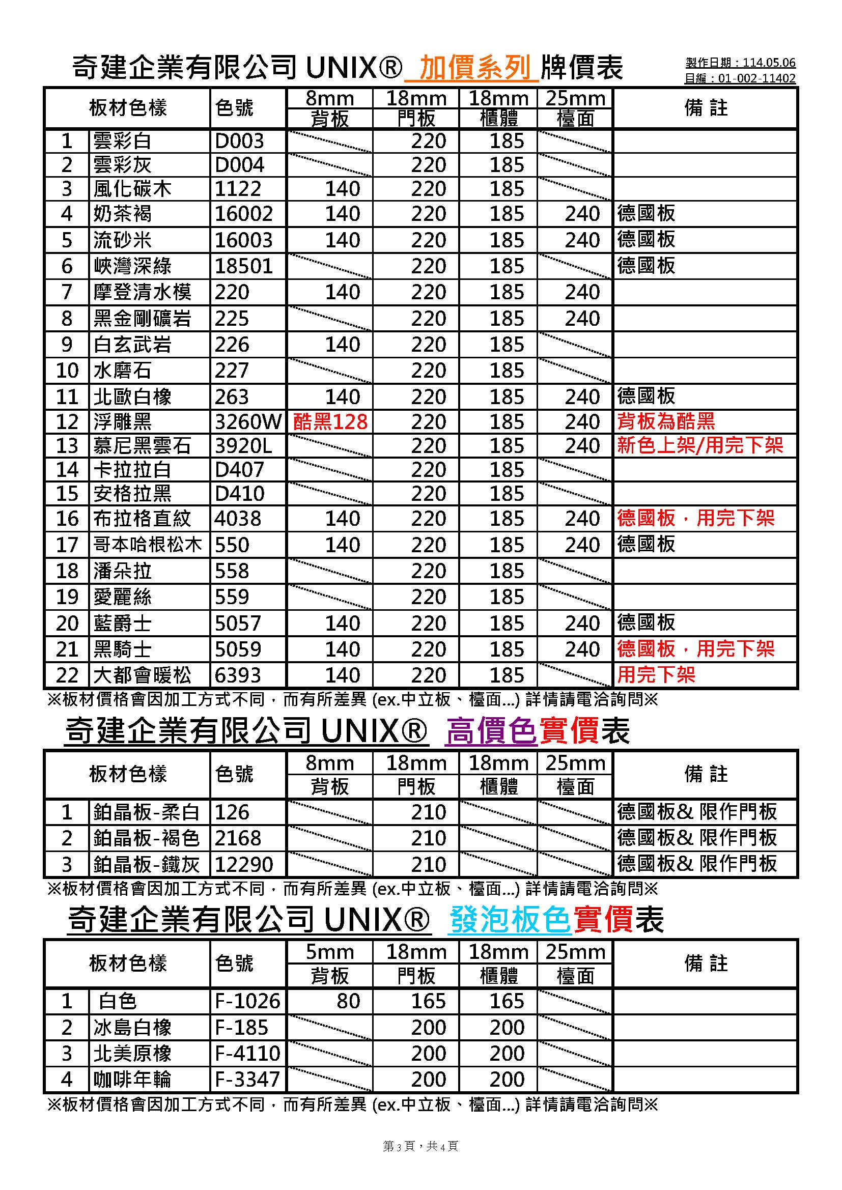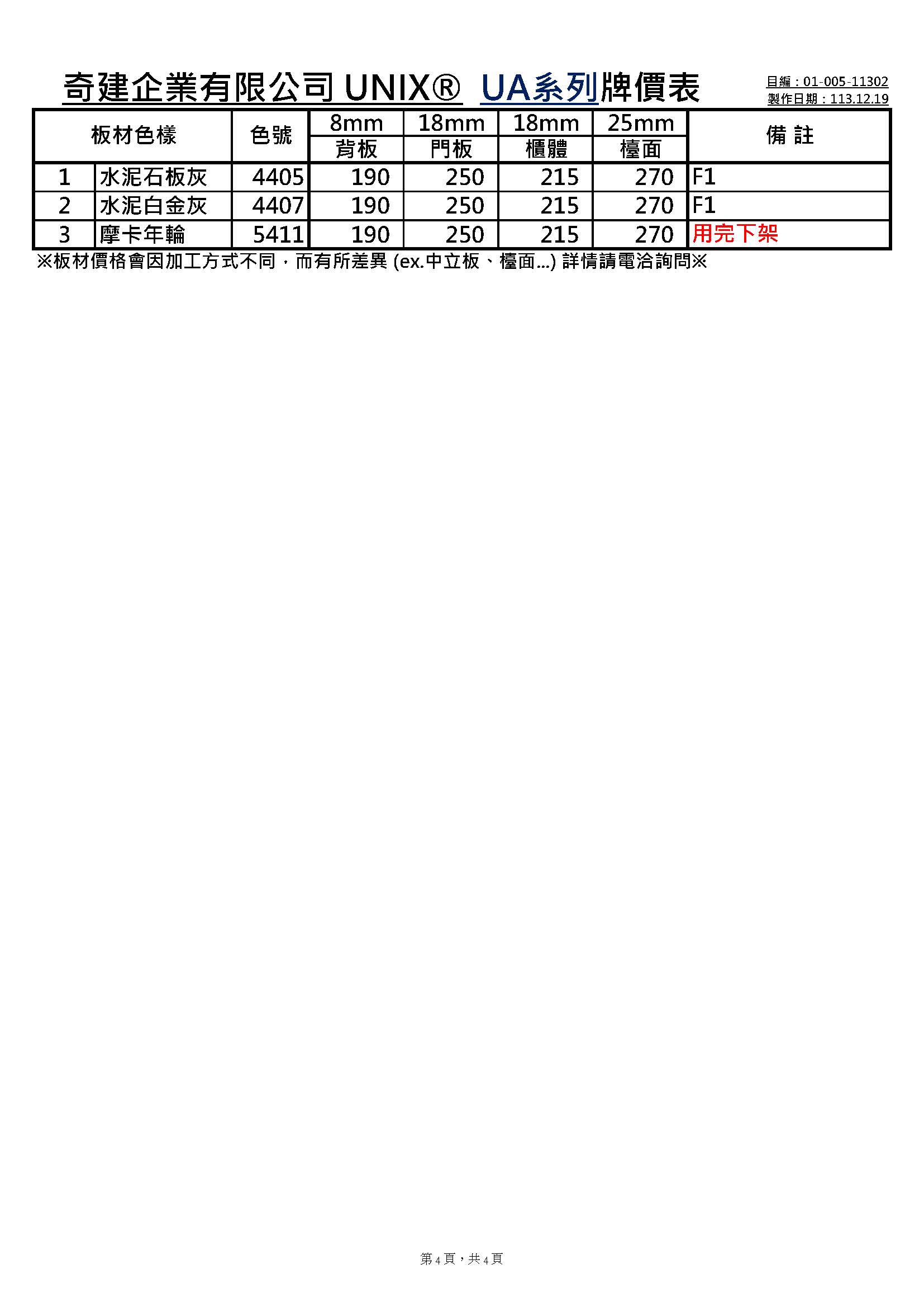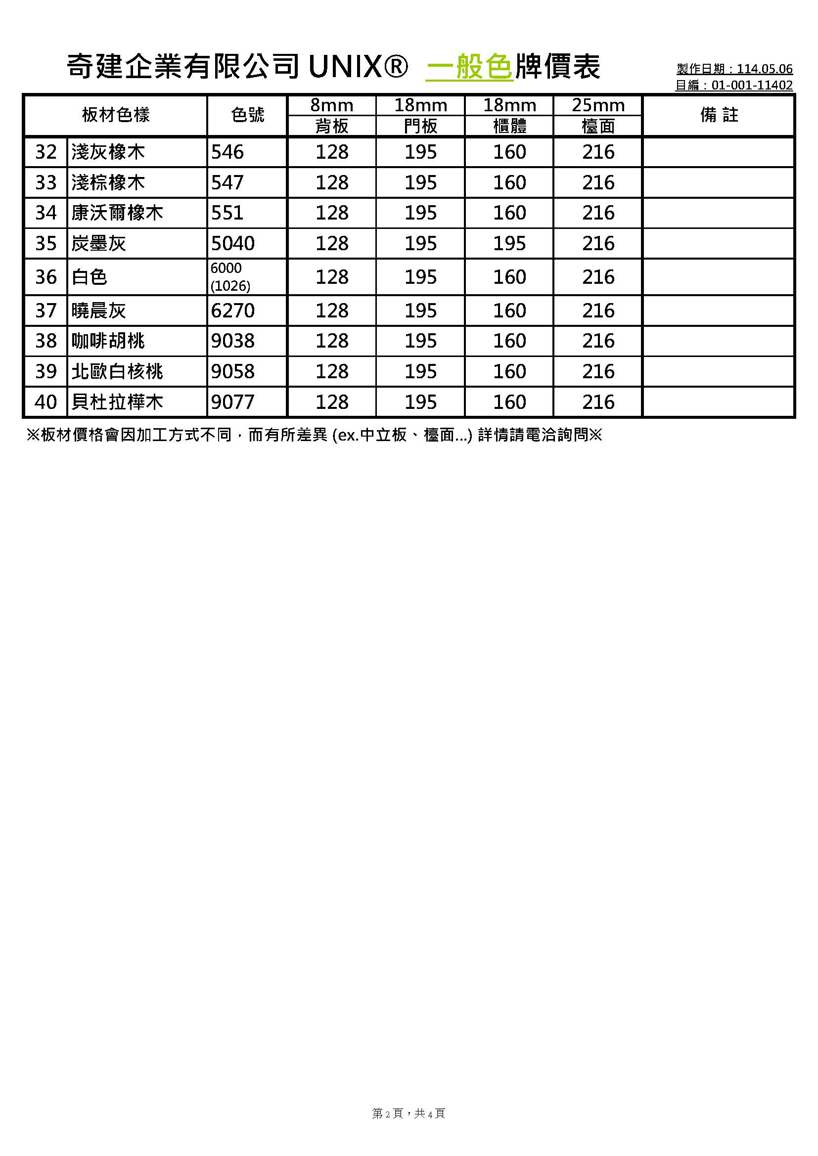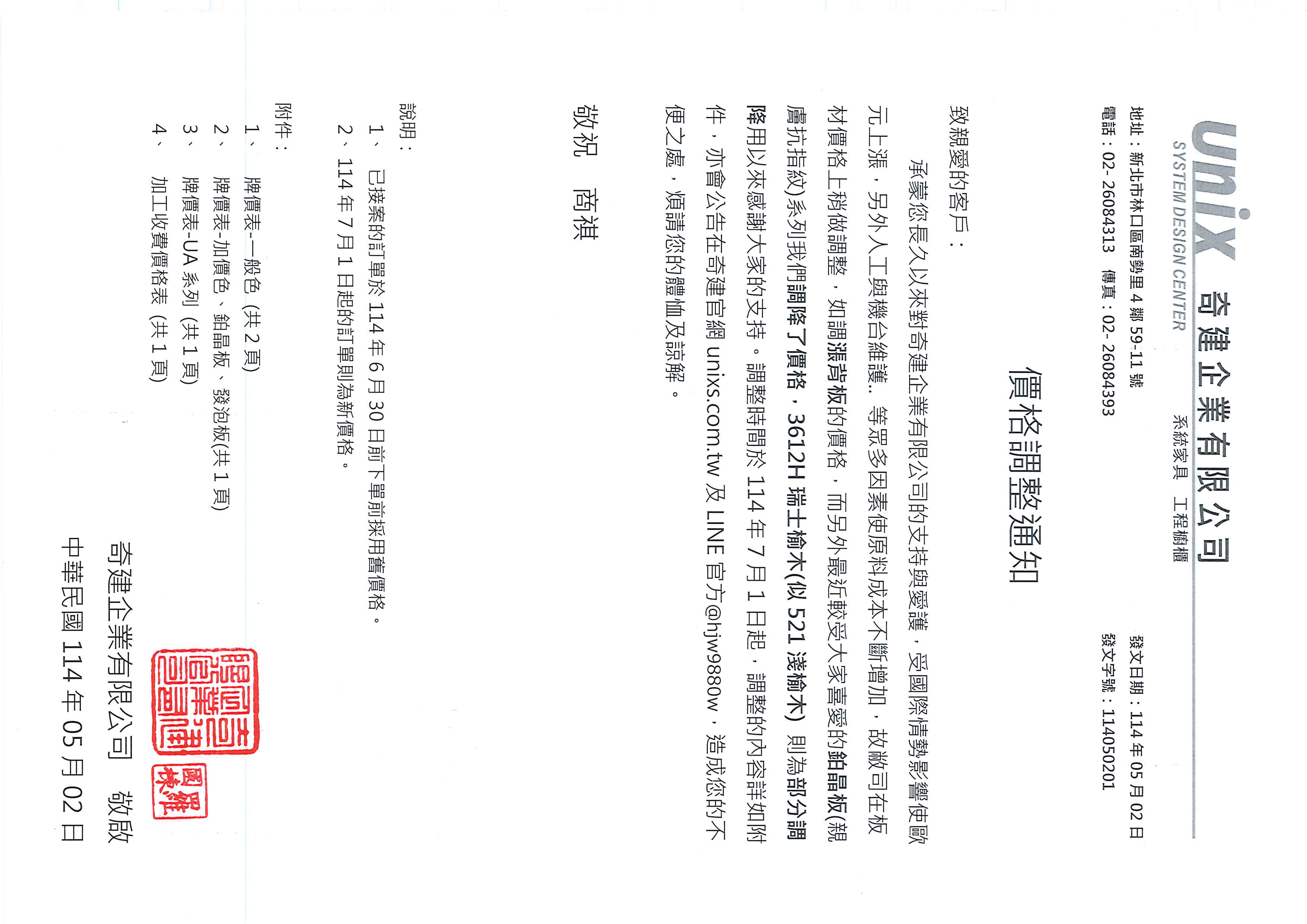 板材調整價格通知